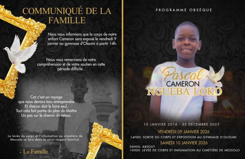 L’inhumation de l’enfant est prévue ce samedi 10 janvier 2026. Après une absoute programmée à 8 heures, la levée du corps aura lieu à 10 heures, avant le départ du cortège funèbre vers le cimetière de Messolo, où il sera conduit à sa dernière demeure.