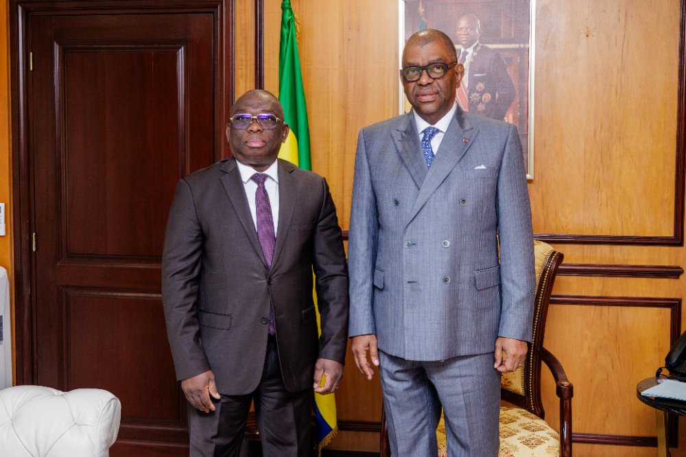 Le Vice-Président de la République, Alexandre Barro Chambrier et l’Ambassadeur de Côte d’Ivoire au cours de leur échange ce jeudi Credit:© 2026 D.R./Le Radar